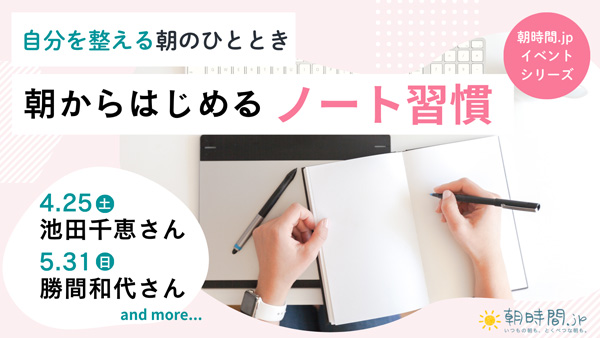 朝時間.jp、「朝からはじめるノート習慣」をテーマにシリーズイベントを開催 ~池田千恵さん、勝間和代さんらをゲストに迎え「朝時間活用と朝のアウトプット」を提案~