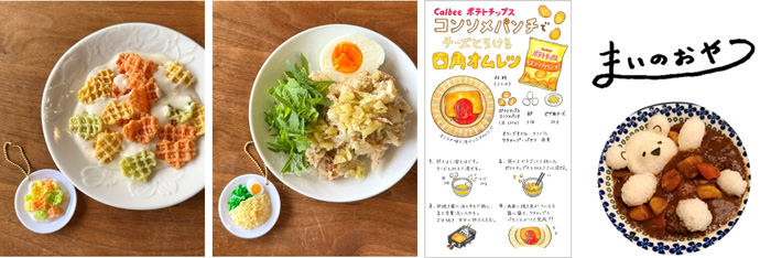 2024年冬~2025年春にかけて、当社の人気「フーディスト(※)」である、「まいのおやつ」さんをはじめとする複数のフーディストが、カルビーの「ルビープログラム(※)」の企画に参加し、その一環としてカルビーの人気スナックをアレンジしたレシピを開発しました。当社では、このコラボレーションにおけるディレクションを担当しました。
