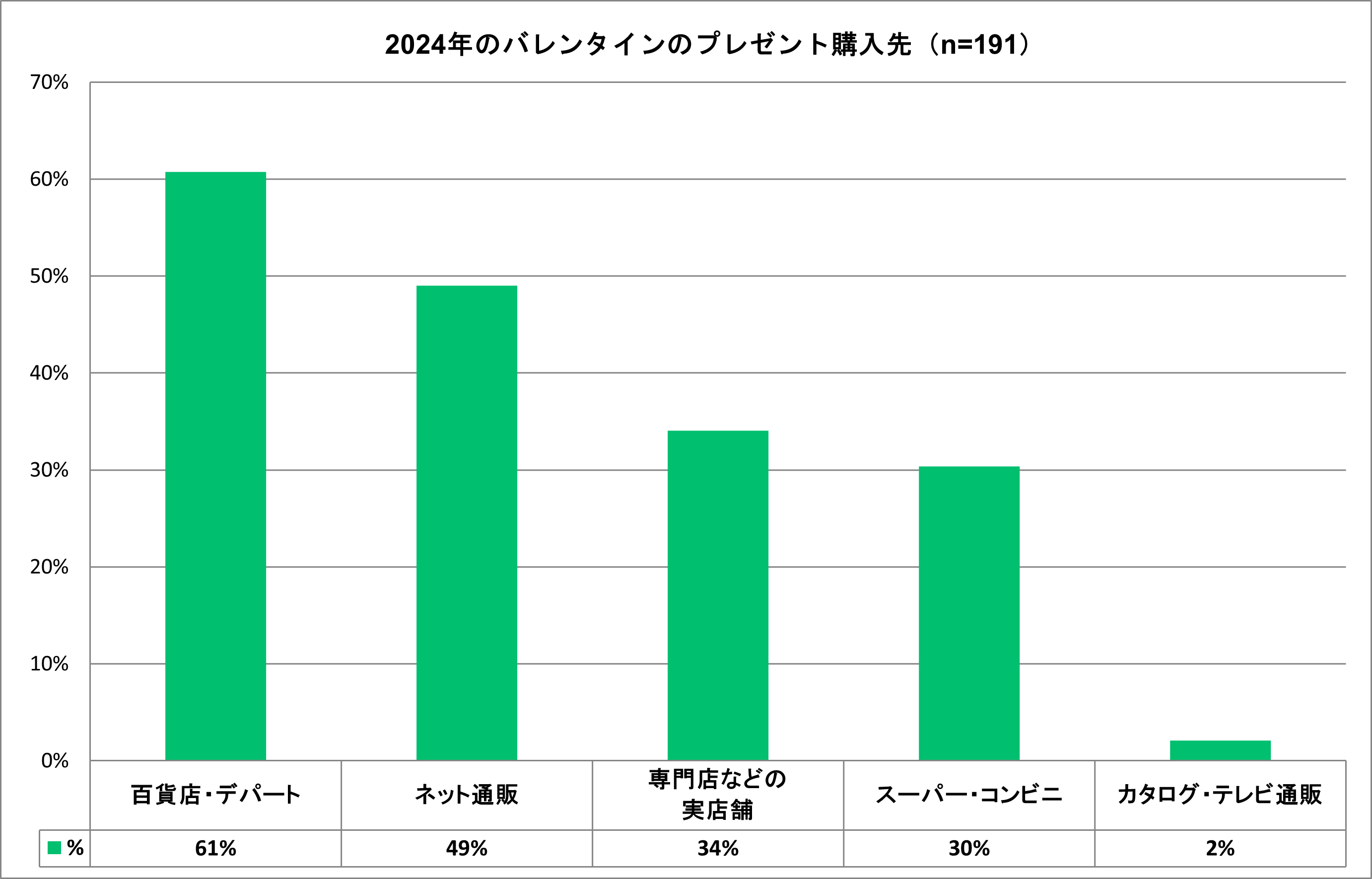 ・バレンタインプレゼントの購入先、「ネット通販」は49%