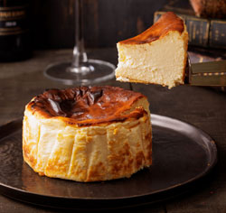 北海道産クリームチーズの旨みをぎゅっと凝縮したバスクチーズケーキです。粉を使わないグルテンフリー製法と二段熟成が生む、濃厚でしっとりとろける口どけが魅力。素材の風味を最大限に引き出した逸品です。